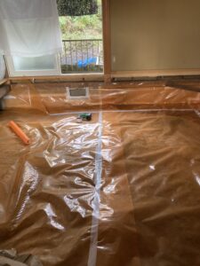 防湿シート(0.2㎜)を敷き込み予防しました。