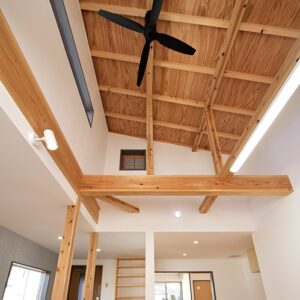 解放感のある勾配天井や